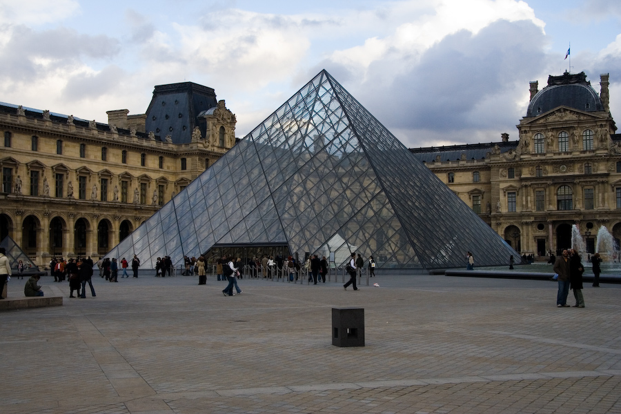 I know the pyramid at the Louvre is rather controversial but personally I approve of it. Once you go in (more security theatre) the space below is quite reminiscent of the central court at the British Museum.
