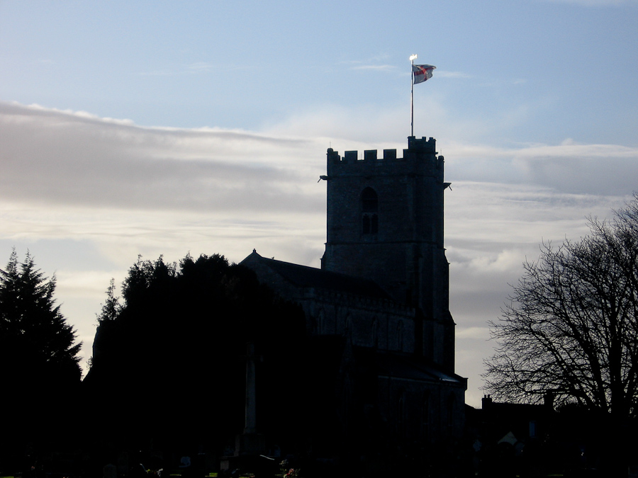 The black cloud here was the departing rain. The earthworks are the Saxon-era town walls, said to be put up by Alfred The Great.